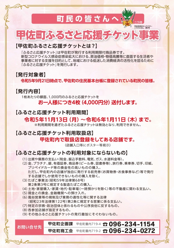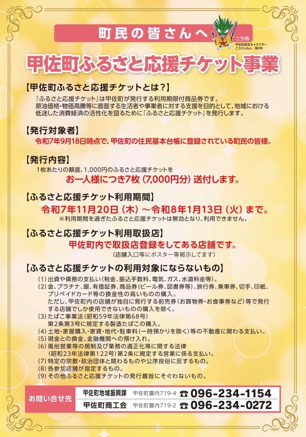ただし、甲佐町内の店舗が独自に発行する前売券(お買物券・お食事券など)等
