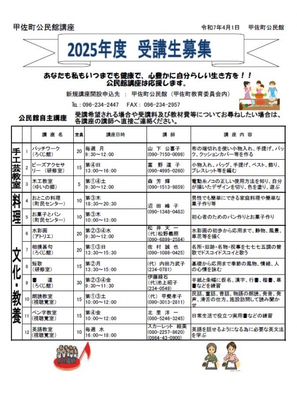 甲佐町教育委員会 社会教育課 社会教育係電話番号:096-234-2447
